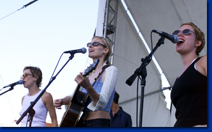 After nearly five years of record-label red tape, songwriter Aimee Mann has emerged an emancipated lady. To celebrate her freedom, Mann graced Lilith Fair's second stage for four dates, stealing the spotlight with a set jammed with main-stage talent like Sheryl Crow and Lilith head Sarah McLachlan. At the Fair's Jones Beach stop in Wantagh, New York, Crow got back to her backup-singing roots, harmonizing on Mann's first song, then forming a singalong offstage with McLachlan and her husband, drummer Ash Sood. The famous fans then joined Mann for "Calling It Quits," an opus about bad lovers and bad record labels. "I like playing the B stage," Mann says. "I like being an underdog. Do I want the main stage? Not really. That's too much responsibility. You have to have a set, a light show-- you're getting into show business, and I don't think I have any particular talent for that." You can buy the album Mann bought back from her record label at aimeemann.com.